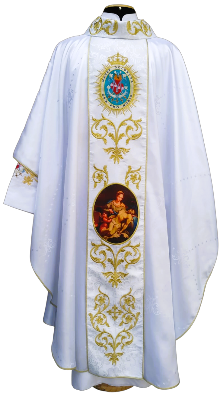 Acompanha estola bordada (confeccionada com o mesmo tecido) de casula.